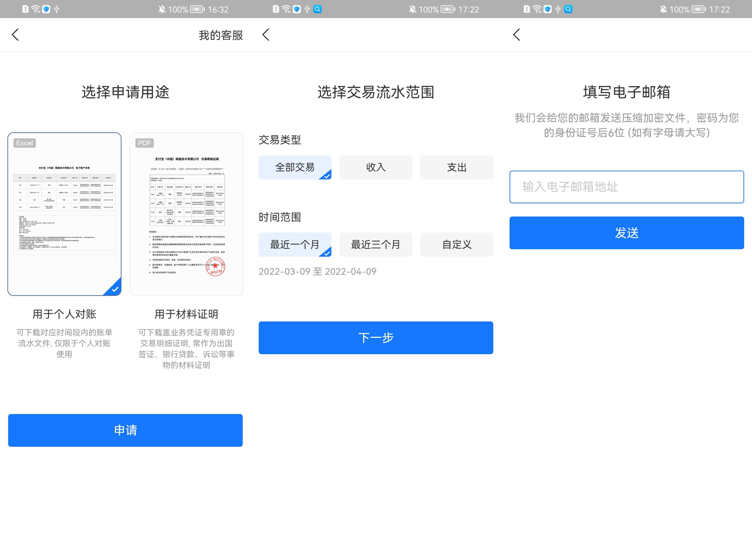 2.选择 用于个人对账 -> 申请,输入支付密码;